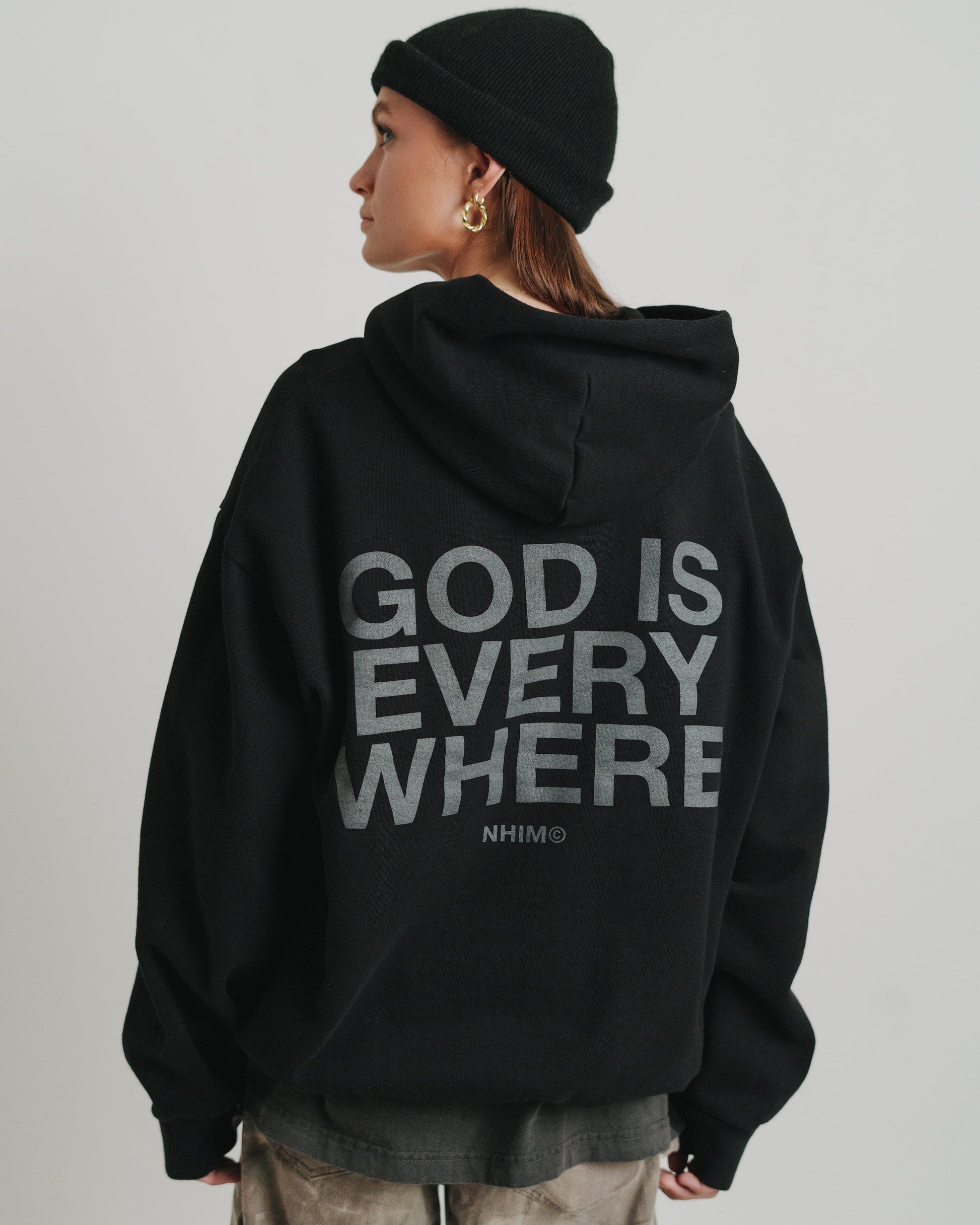 GOD IS EVERYWHERE BLACKOUT HOODIE IN BLACK
