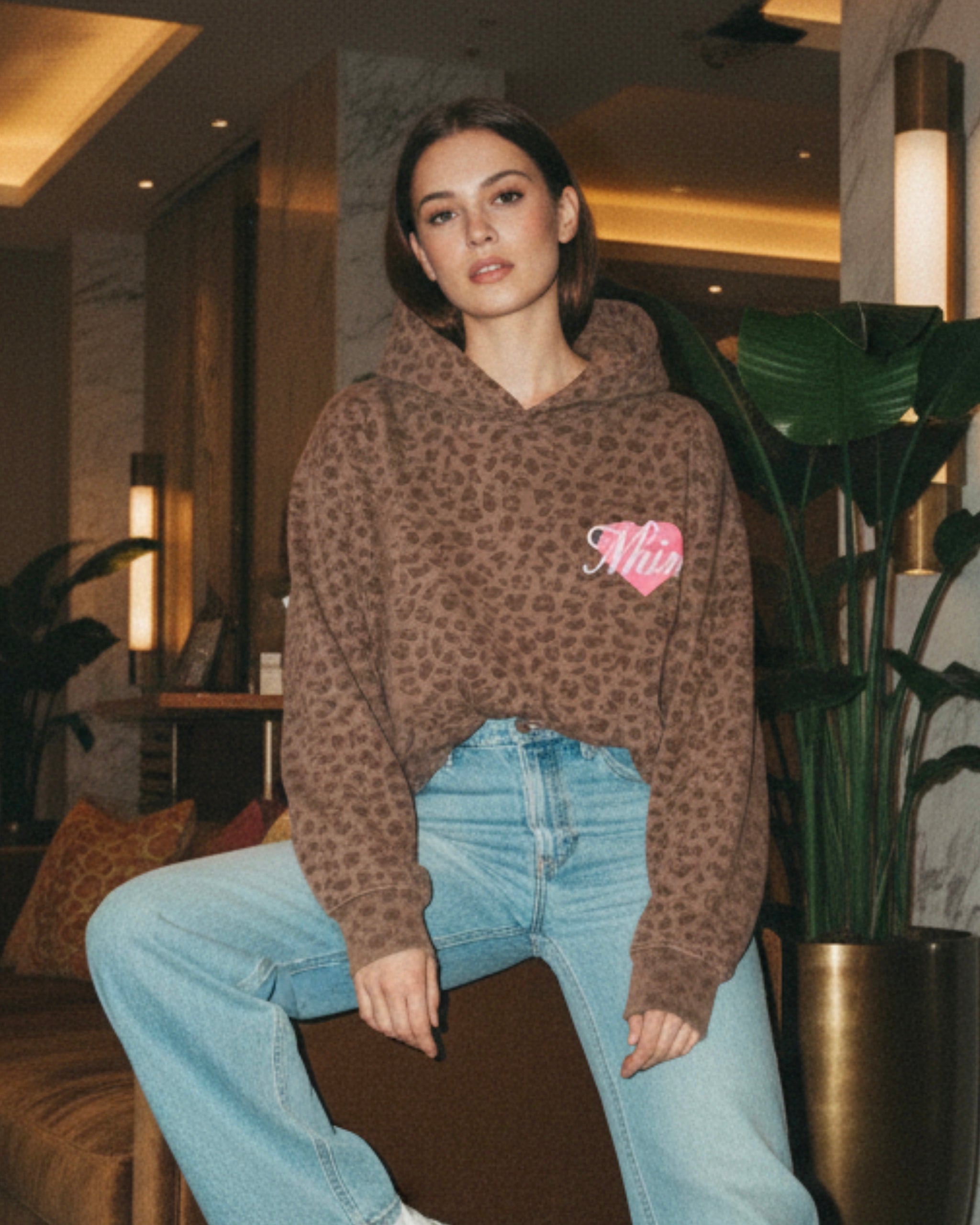 LYN AMORE WASHED BROWN LEOPARD HOODIE